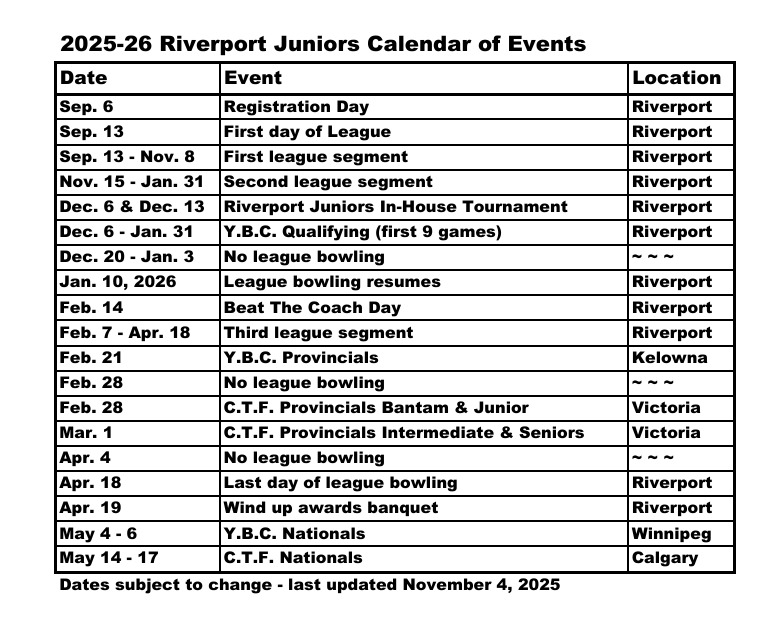 December 6th the YBC Provincial qualifying gets underway. First 9 league game bowled between December 6th and January 31st.