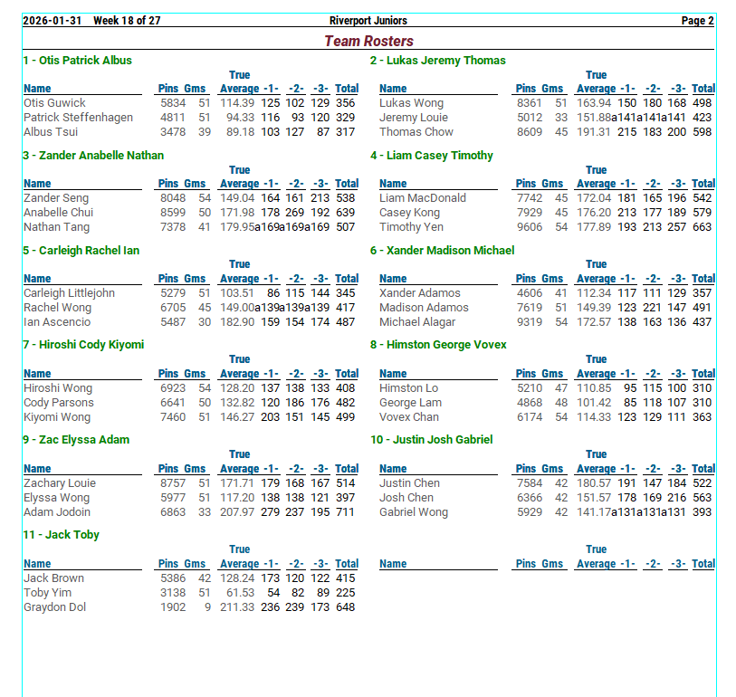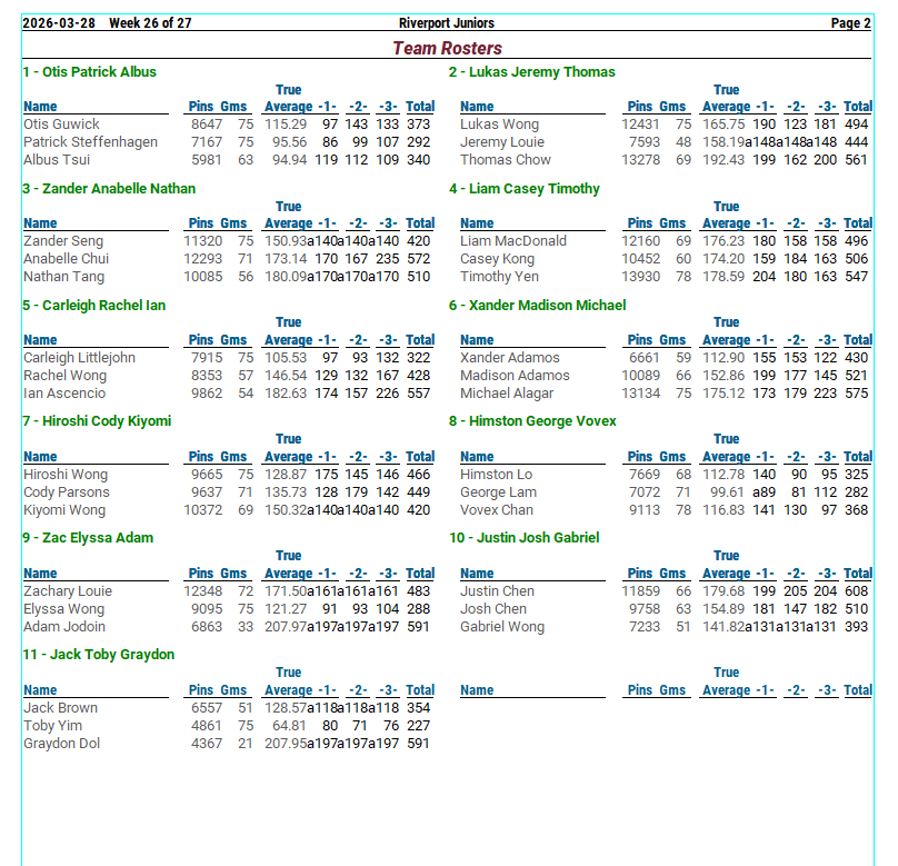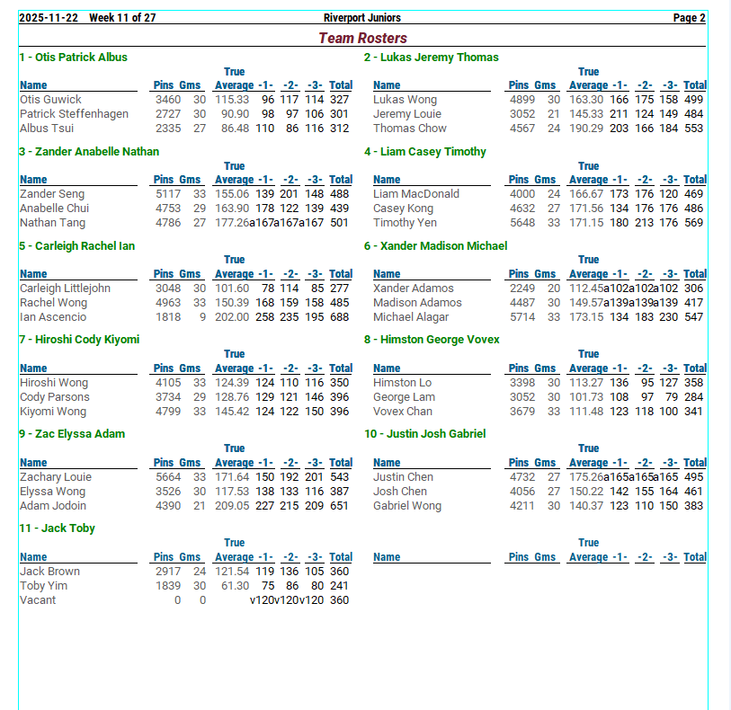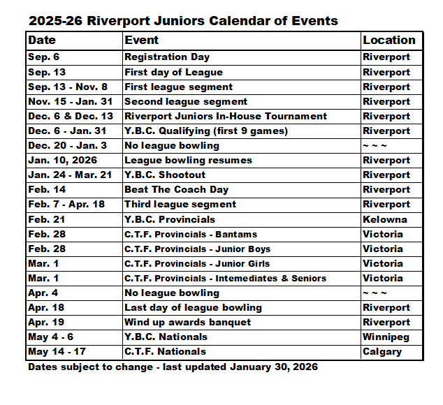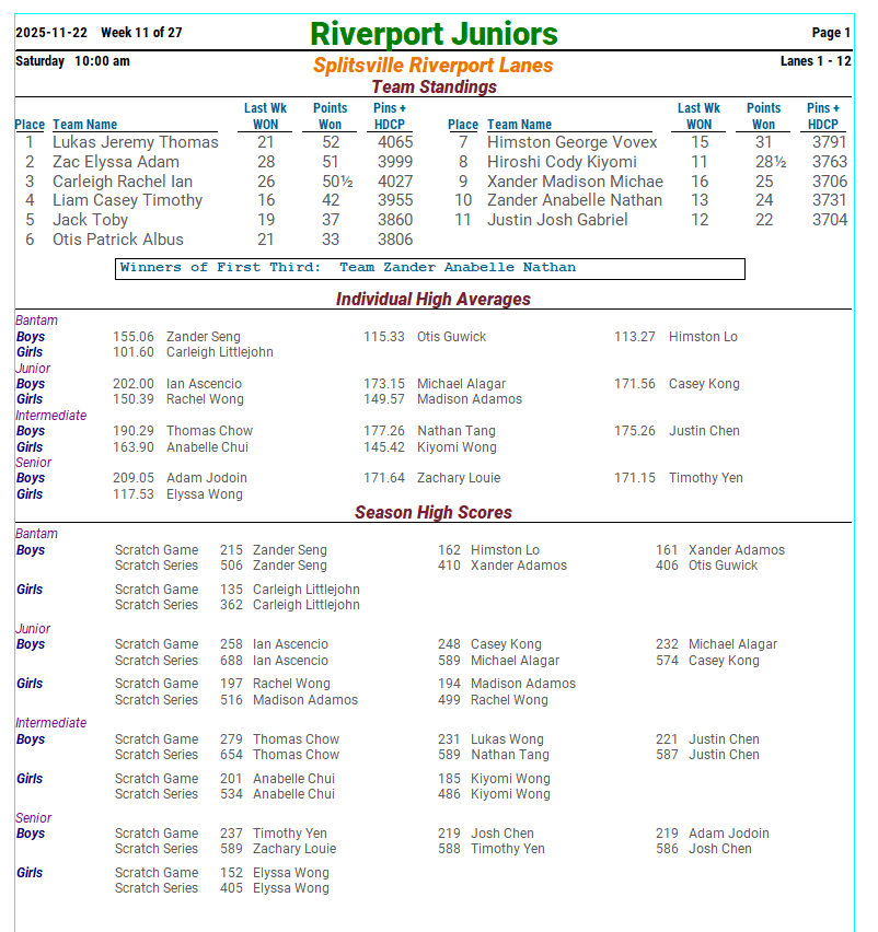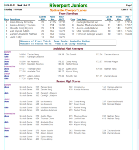 Splitsville Riverport – Riverport Juniors – Standing Sheets League Secretary