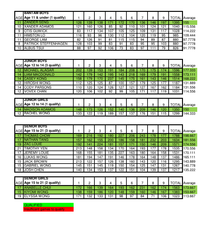 The YBC Provincial qualifying has ended. All the bowlers in green will be representing Splitsville Riverport Lanes at the Provincial Tournament in Kelowna on Saturday February 21st for a chance to represent B.C. at the YBC National Championship in Winnipeg in May. Good luck to all of you!
