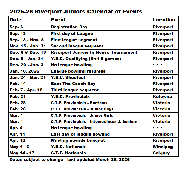 The 2026 CTF Provincial Qualifying Tournament ran over two separate days at Langford Lanes in Victoria. The Bantam Boys, Bantam Girls and Junior Boys competed on Saturday February 28th and the Junior Girls, Intermediate Boys and Girls and the Senior Boys and Girls bowled on Sunday March 1st.